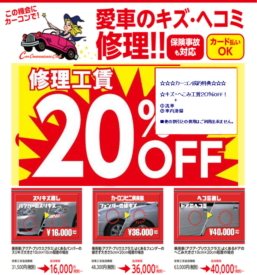 ◇キズ・ヘコミ修理工賃20%OFF!!