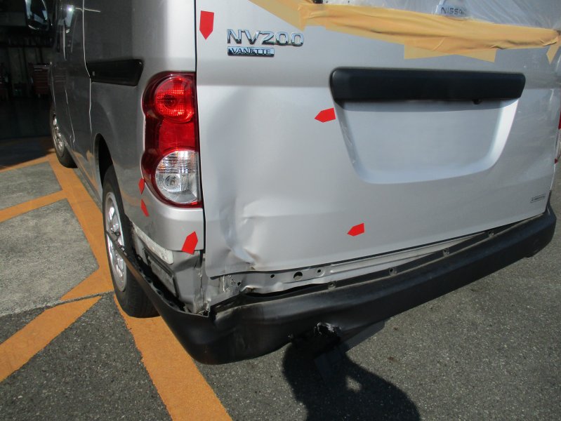 静岡県三島市 NV200バネット テールレンズ、リヤバンパー、リヤゲート、マフラー交換 バックパネル(カット板金)、リヤフェンダー板金塗装