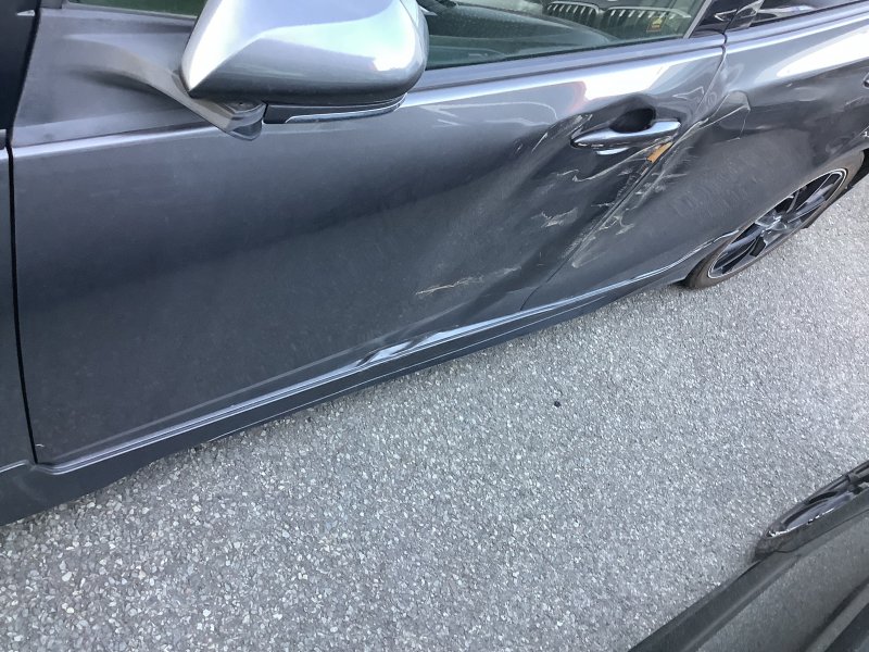 長野県長野市若穂:トヨタ プリウス、左側フロント・リヤドアパネルヘコミキズ、左フロント・リヤドアパネル一式新品パーツ取り寄せ塗装修理事例、型式:DAAーZVW55ーAHXGBT