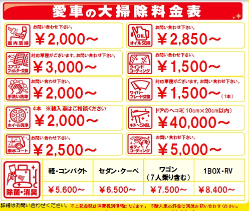 愛車の大掃除 料金表