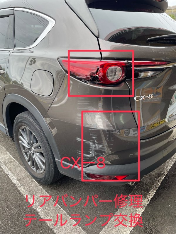静岡県藤枝市|CXー8(マツダ)のキズ・へこみ直し事例(リアバンパー修理 テールランプ交換)
