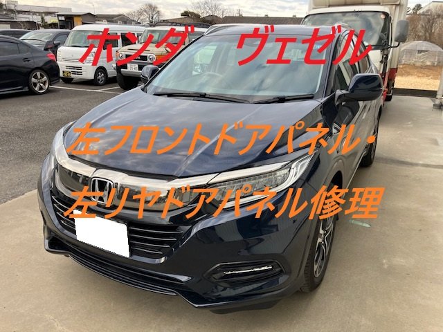 千葉市|千葉市若葉区|ホンダ ヴェゼル 左フロントドアパネル 左リヤドアパネル 板金 鈑金 修理 キズ へこみ キズ修理 へこみ修理 取替 交換 保険 保険修理