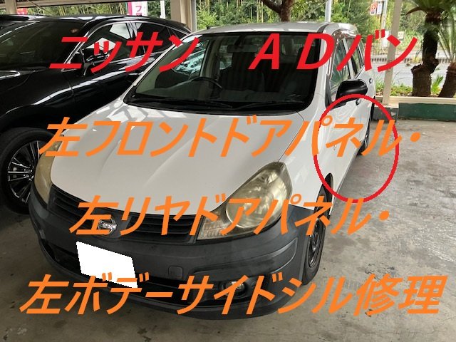 佐倉市|ニッサン ADバン 左フロントドアパネル 左リヤドアパネル 左ボデーサイドシル 板金 鈑金 修理 キズ へこみ キズ修理 へこみ修理 取替 交換 保険 保険修理