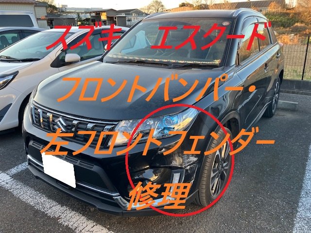 佐倉市|スズキ エスクード フロントバンパー 左フロントフェンダパネル 板金 鈑金 修理 キズ へこみ キズ修理 へこみ修理 取替 交換 保険 保険修理