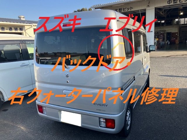 佐倉市|スズキ エブリィー バックドア 右クォーターパネル 板金 鈑金 修理 キズ へこみ キズ修理 へこみ修理 取替 交換 保険 保険修理
