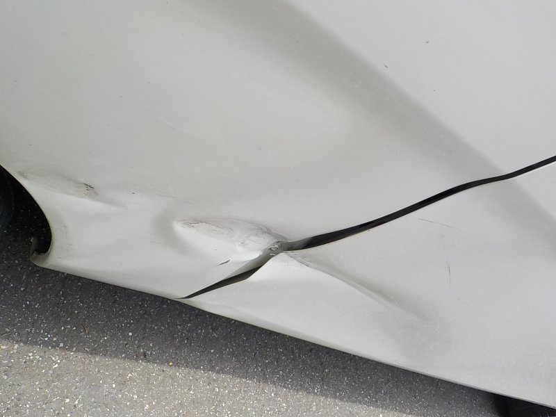 ●カローラ4ドアセダン、塗装:白、2コートパール、損傷:フロントドア中央、