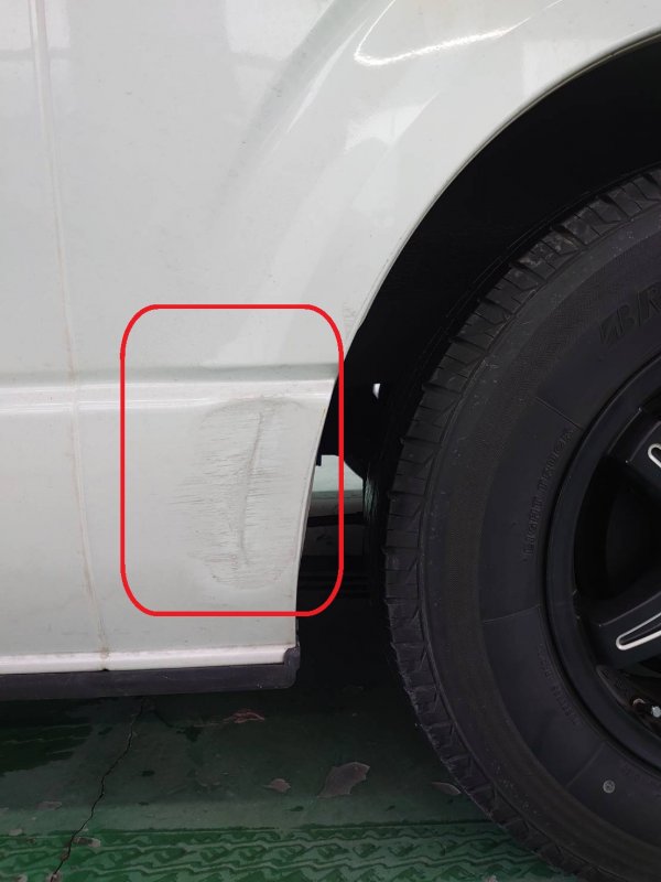 長野県長野市|ハイエース(トヨタ)のキズ・へこみ直し事例(左クオーターパネルキズ・ヘコミ修理作業)