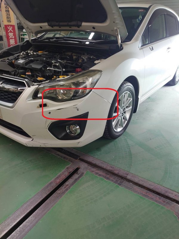 長野県長野市|インプレッサ(スバル)のキズ・へこみ直し事例(フロントバンパー、フェンダー交換作業)