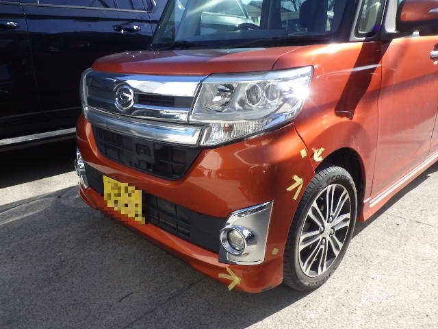 神奈川県座間市|タント(ダイハツ)のキズ・へこみ直し事例(フロントバンパー交換 左フロントフェンダー鈑金)