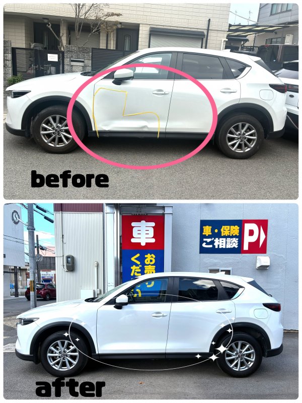 マツダ CX-5 フロントドア 交換 傷ヘコミ 京都市 山科区