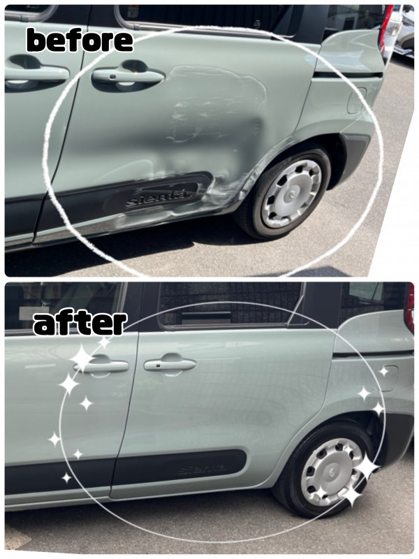 トヨタ シエンタ 左リアドア フェンダー 鈑金 塗装 修理 京都市 山科区