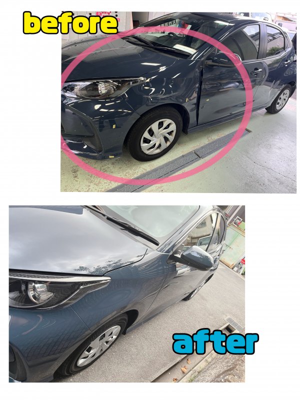 トヨタ ヤリス 左側面 キズ ヘコミ 京都市 山科区
