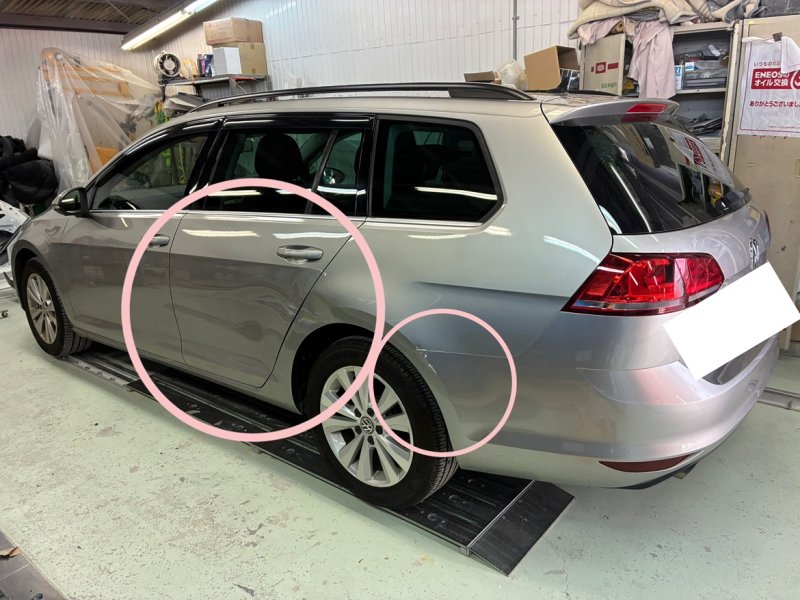 フォルクスワーゲン ゴルフ リアドア リアフェンダー リアバンパー ロッカアウタパネル 鈑金 塗装 修理 京都市山科区