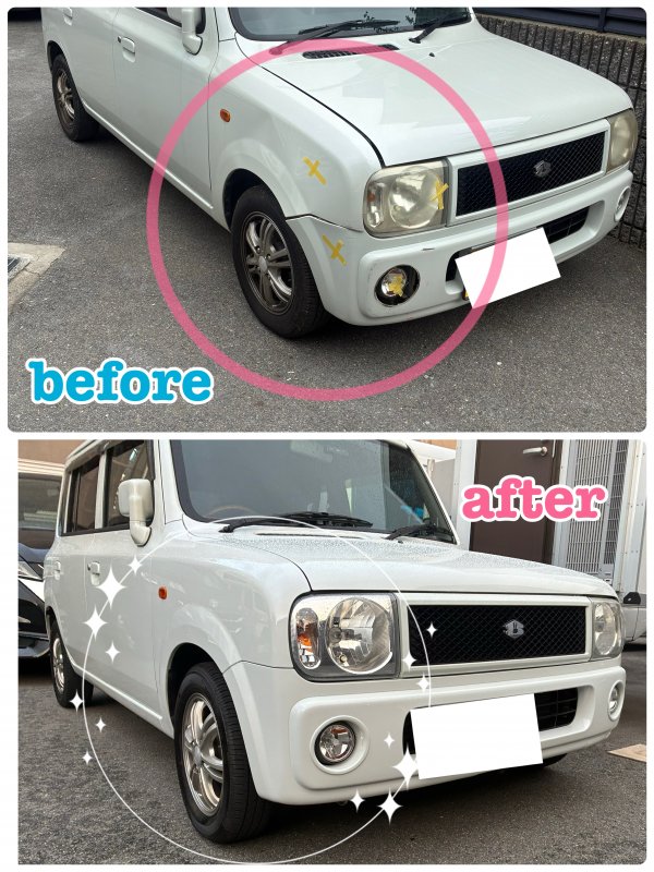 スズキ アルトラパン 右 フロントバンパー フロントフェンダー 傷 へこみ 鈑金 塗装 京都市 山科区