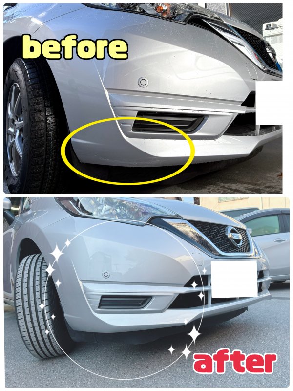 日産 ノート フロントバンパー 傷 修理 塗装 京都市 山科区
