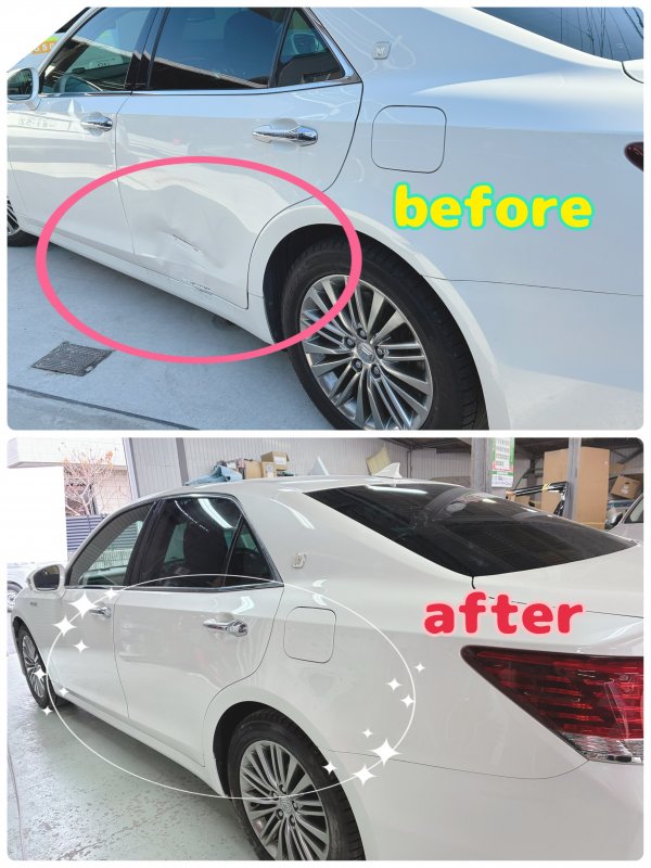 トヨタ クラウン 左リアドア交換 ロッカーアウタパネル リアフェンダー 鈑金塗装 京都市 山科区