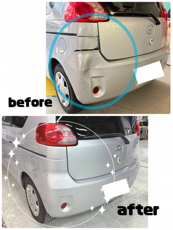 トヨタ ポルテ 左バンパー・テールランプ交換 ロッカーパネル クォーターパネル 鈑金 塗装 修理 京都市 山科区