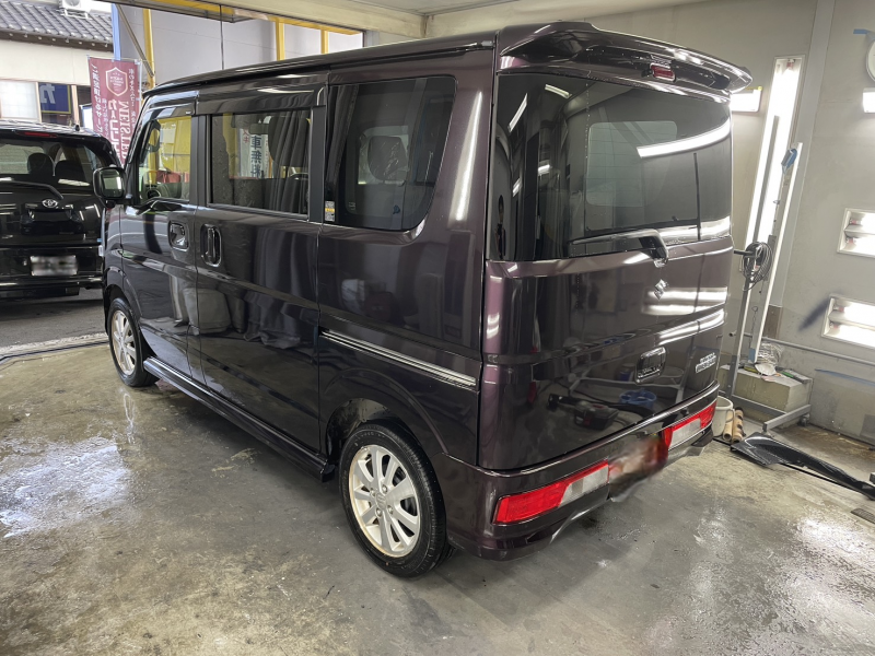 静岡県富士宮市|エブリィ(スズキ)のキズ・へこみ直し事例(リアバンパーのキズと曲がり修理)