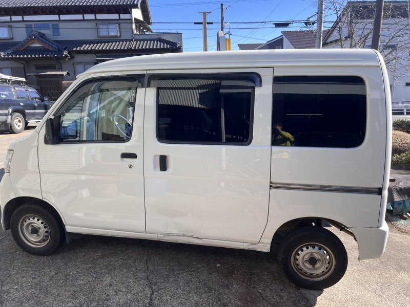 静岡県富士宮市|カーゴ(ダイハツ)のキズ・へこみ直し事例(スライドドアとサイドシルとバックドアのヘコミ修理)