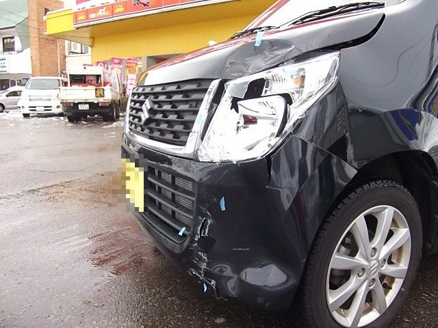 MH34S ワゴンR ヘッドランプ取替 フロントバンパー取替 フードパネル取替 フェンダーパネル取替 福井市