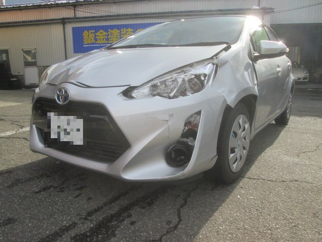 NHP10 アクア フェンダー取替 ヘットランプ取替 バンパー取替 ラジエーターサポート修正 福井市