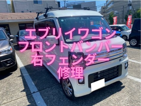 【川崎市(宮前区・高津区・多摩区・中原区・麻生区)横浜市(青葉区・都筑区)東京都(世田谷区)】 エブリイワゴン 右フェンダー/右前ドア/フロントバンパー キズへこみ割れ修理