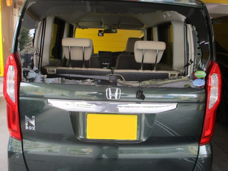N-BOX ホンダ リヤ ガラス交換 車検 点検 修理 整備 板金 塗装 補修 キズ へこみ 新車 中古車 リース