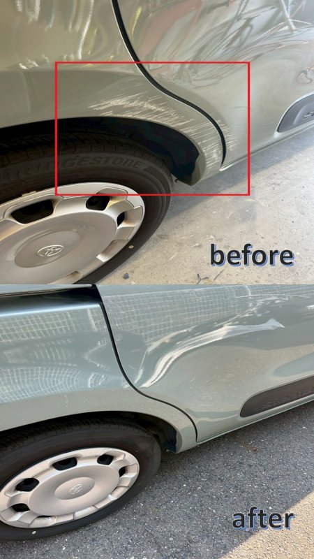 愛知県海部郡大治町|シエンタ(トヨタ)のキズ・へこみ直し事例(リヤドア・リヤフェンダー周辺キズへこみ修理になります。)