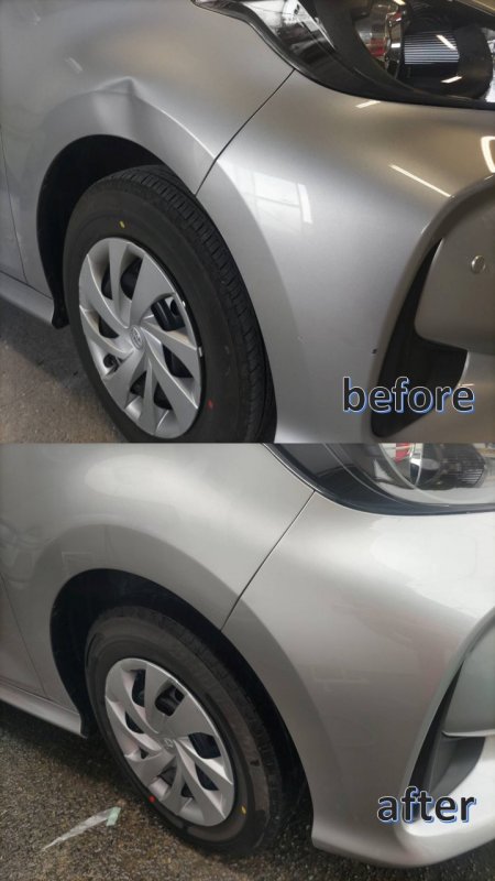 静岡県伊東市|アクア(トヨタ)のキズ・へこみ直し事例(右側フロントフェンダーキズへこみ修理になります。)
