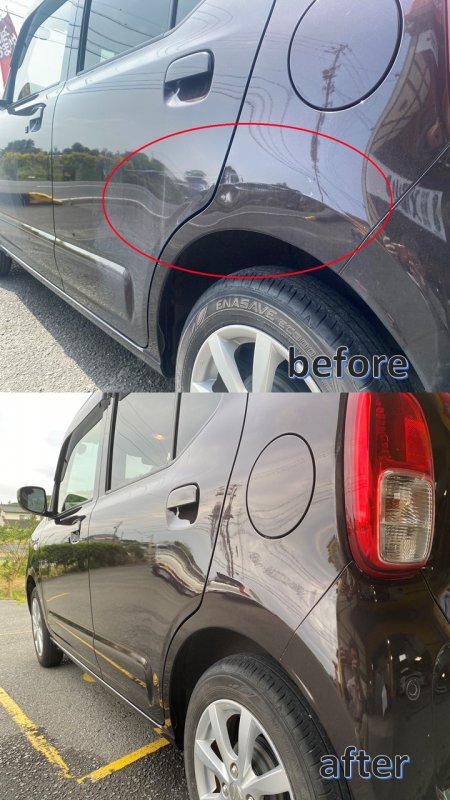 静岡県浜松市浜名区|アルト(スズキ)のキズ・へこみ直し事例(リヤドア、リヤフェンダー周辺鈑金になります。)