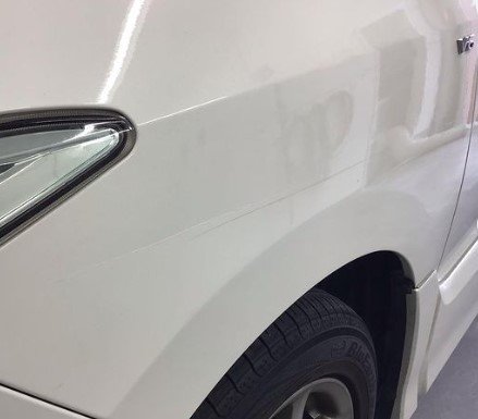 福岡県太宰府市|エクスクァイア(トヨタ)のキズ・へこみ直し事例(右後ろ タイヤ上(フェンダー) 車 修理 鈑金)