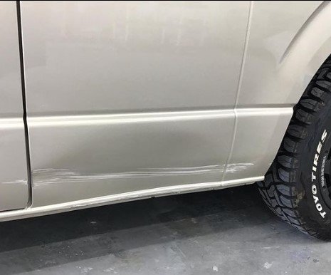 福岡県太宰府市|ハイエース(トヨタ)のキズ・へこみ直し事例(左後ろドアパネル他 キズ ヘコミ 車 修理 鈑金 )