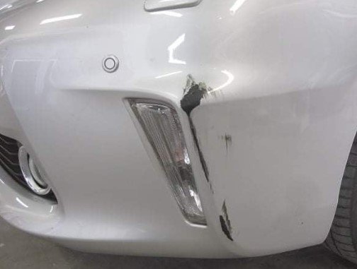 福岡県糟屋郡新宮町|プリウス(トヨタ)のキズ・へこみ直し事例(前バンパー キズ ヘコミ 車 修理 鈑金)