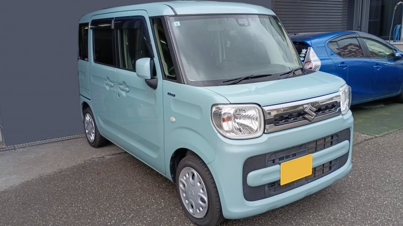 石川県 金沢市 車 スズキ スペーシア フロントバンパー フェンダー 傷 へこみ 板金 塗装 修理