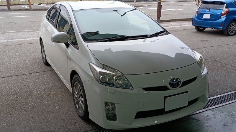 石川県 金沢市 車 トヨタ プリウス フロントバンパー 傷 へこみ 新品 部品 交換