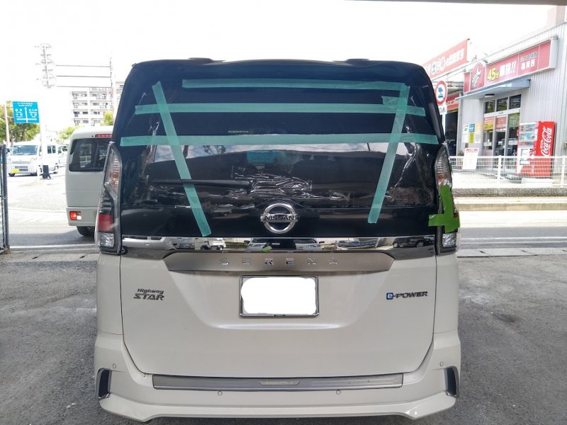福岡県福岡市西区|セレナ(日産)のキズ・へこみ直し事例(リアガラス割れ)