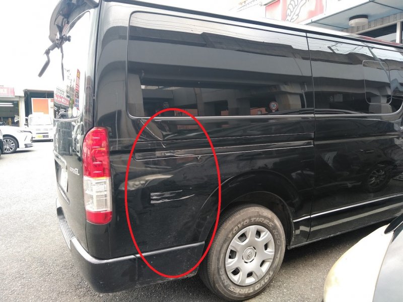 福岡県福岡市西区|ハイエース(トヨタ)のキズ・へこみ直し事例(右クォーターパネル板金修理)
