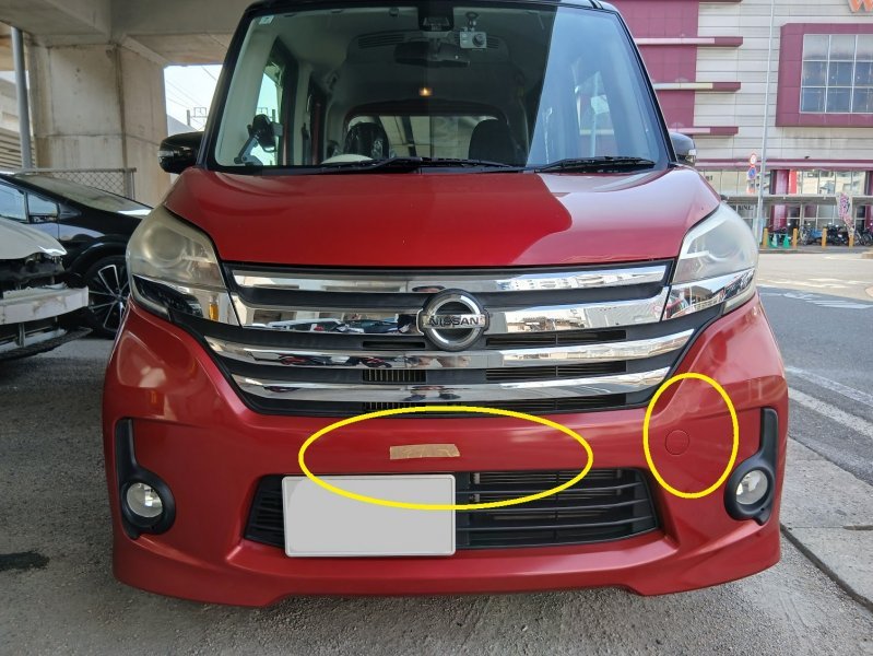 福岡県福岡市城南区|デイズルークス(日産)のキズ・へこみ直し事例(フロントバンパー修理)