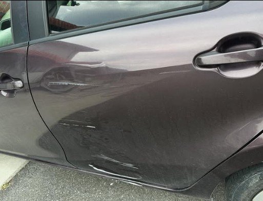 熊本県宇城市|アクア(トヨタ)のキズ・へこみ直し事例(左後ろ ドアパネル キズ ヘコミ 車 修理 鈑金)