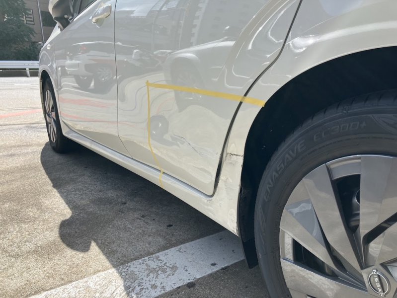 熊本県熊本市北区|ノート(日産)のキズ・へこみ直し事例(左後ろドアパネル他 キズ ヘコミ 車 修理 鈑金 )