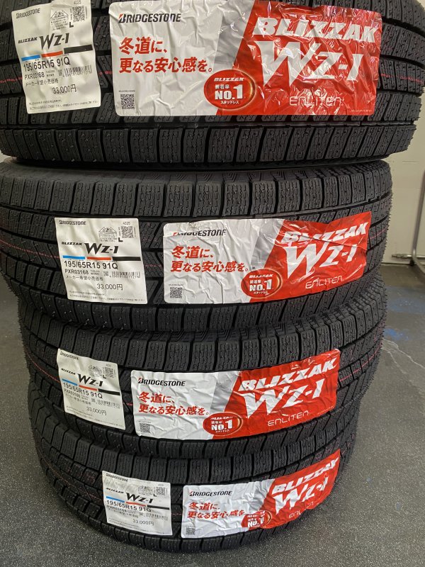 冬支度 スタッドレスタイヤ タイヤ交換 195/65R15 新製品 新商品 ブリヂストン ブリザックWZ-1 最新 高性能 氷上でも安心 安心安全 作業早い 丁寧 神戸市 東灘区 灘区 中央区 北区 芦屋 西宮 住吉 御影 魚崎 深江
