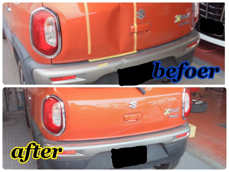 静岡県浜松市中央区|クロスビー(スズキ)のキズ・へこみ直し事例(リアゲート補修)
