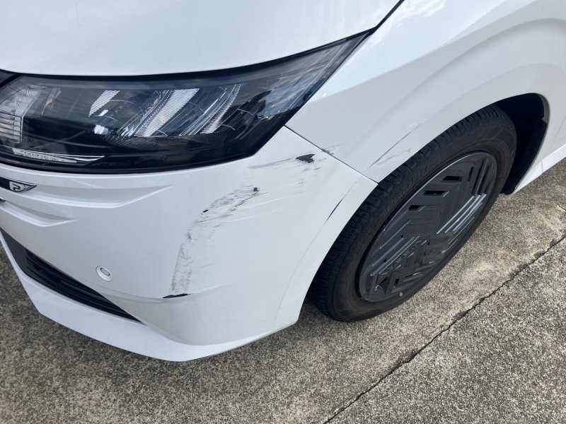 🛠️【ダイハツ タント 修理事例】金沢市でバンパーのえぐれキズを修理!自費修理33,110円でピカピカに