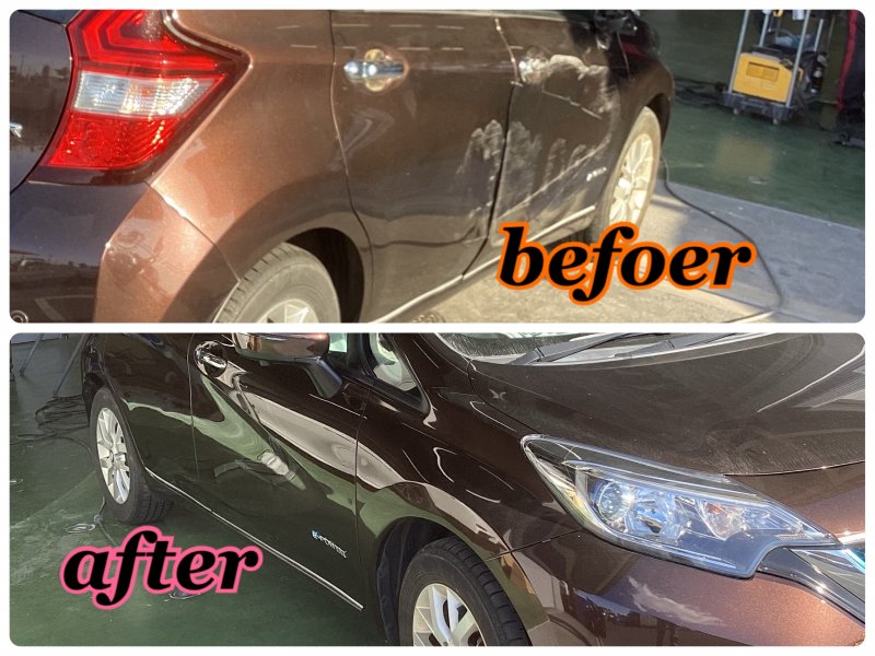 静岡県浜松市中央区|ノート(日産)のキズ・へこみ直し事例(フロントドア・リアドア板金補修)
