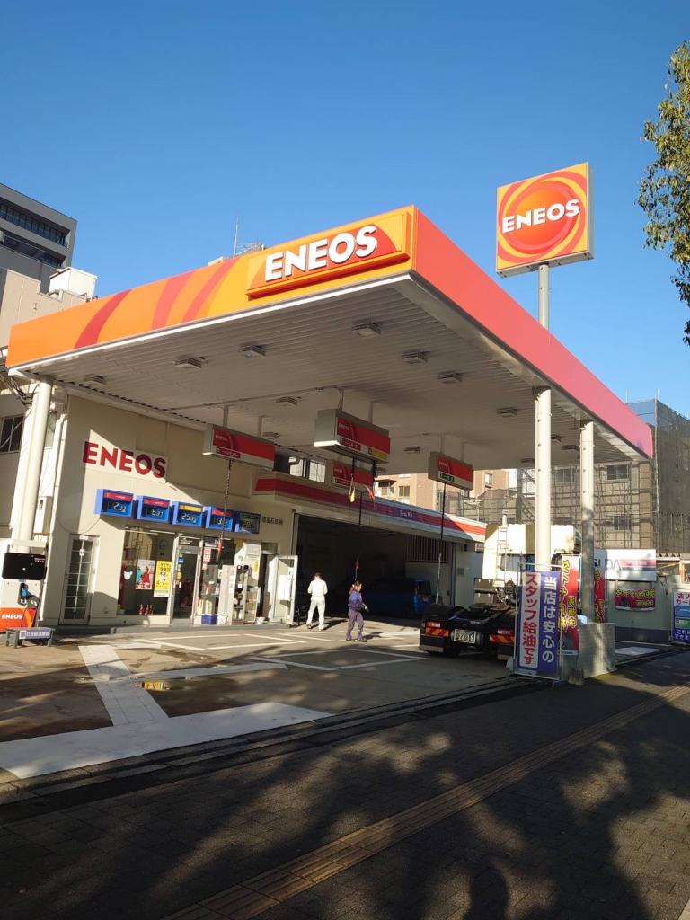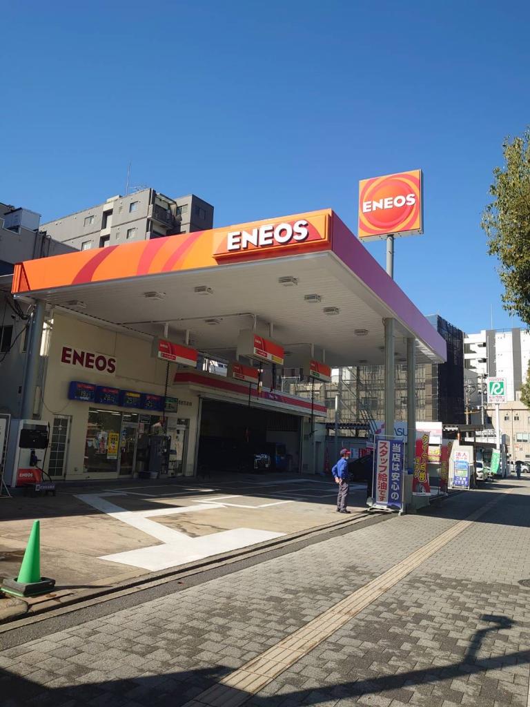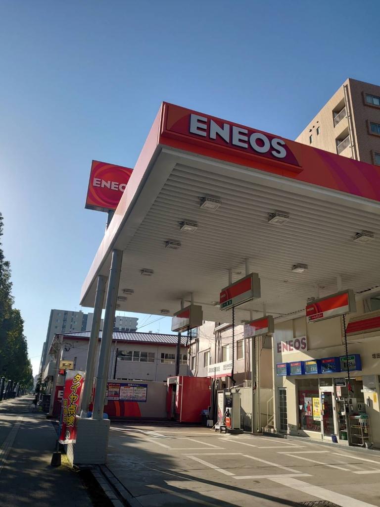 ENEOSの看板が目印のガソリンスタンドと併設の店舗になります。