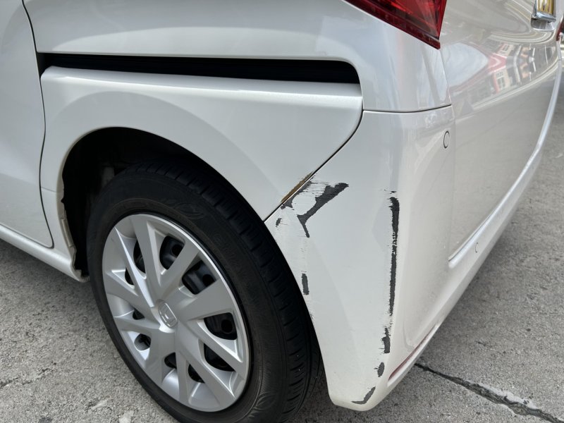 福岡県太宰府市|NBOX(ホンダ)のキズ・へこみ直し事例(左後ろ リヤバンパー、クォーターパネルの修理 鈑金 車)