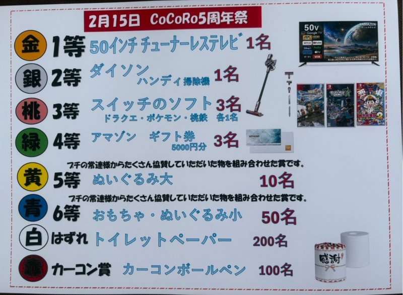 大阪 松原市 カーコンビニ俱楽部 CoCoRo松原天美 ガラガラ抽選会