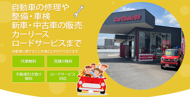 ★株式会社カークリニック99は奈良の天理・郡山を中心に自動車の修理や車検・整備、新車・中古車の販売まで自動車に関することを幅広く手がけています。