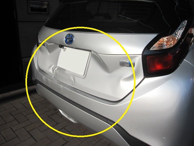 トヨタ アクア リアゲート バックパネル リアバンパー交換 キズ・ヘコミ修理│大阪市平野区 鈑金塗装 保険修理