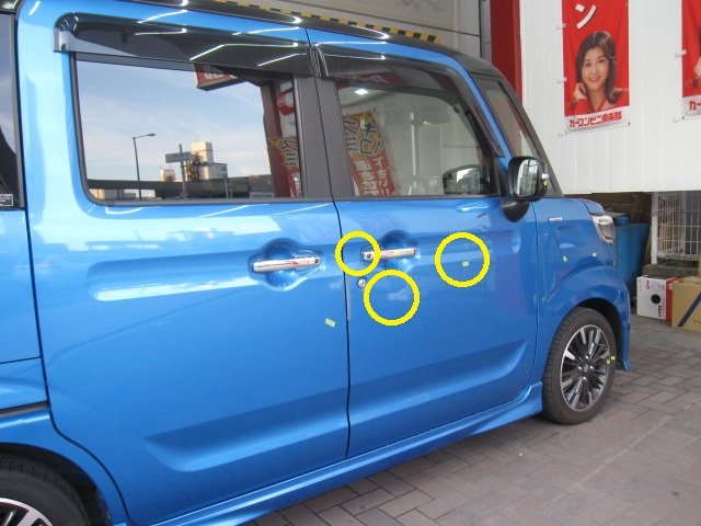 スズキ スペーシア フロントドア キズ・ヘコミ修理 │大阪市平野区 鈑金塗装